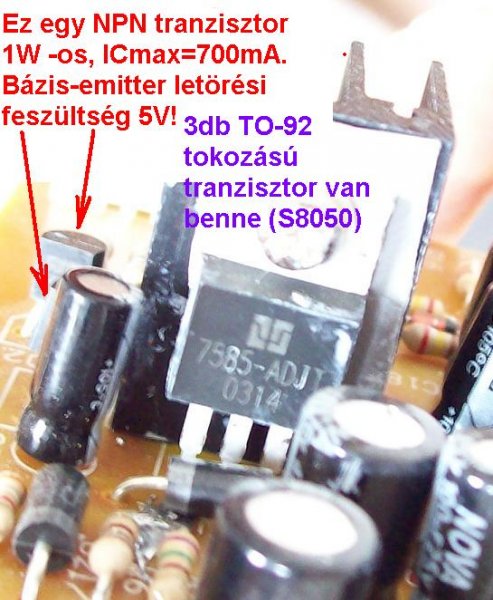Nagyon furcsa, hogy csak 1 db teljesítménytranzisztor van benne, ami kapcsoló üzemben sztem nagyon sokat kibír. Ezen kívül már csak össz-vissz 3db TO-92 -es tokozású van benne, amik meglepő mód 1W -ot tudnak. (S8050)