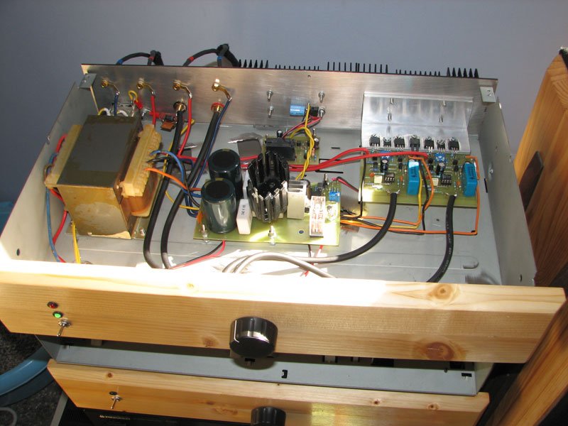 Nem szerettem volna sok pénzt bele ölni, így maradt az egy trafó, és egy tápegység, és abból is a vérszegényebb fajta, csak 2 X10.000uF.