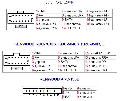 Nagyon hasonlit a JVC-é és a Kenwood-é, de egy az egyben aszerint bekötni rizikos lenne. Mindenesetre itt a kép, ennek alapján egy multiméterrel probáld leelenörizni. Pl. a GND és a ház között rövidzárt kell mérned, a 4 hangszoronál vezetékpáronként ugyanolyan ellenállásértéket. Csak ovatosan a bekötéssel, mert ha a pluszt és minuszt felcseréled, rögtön megoldodik a problémád.