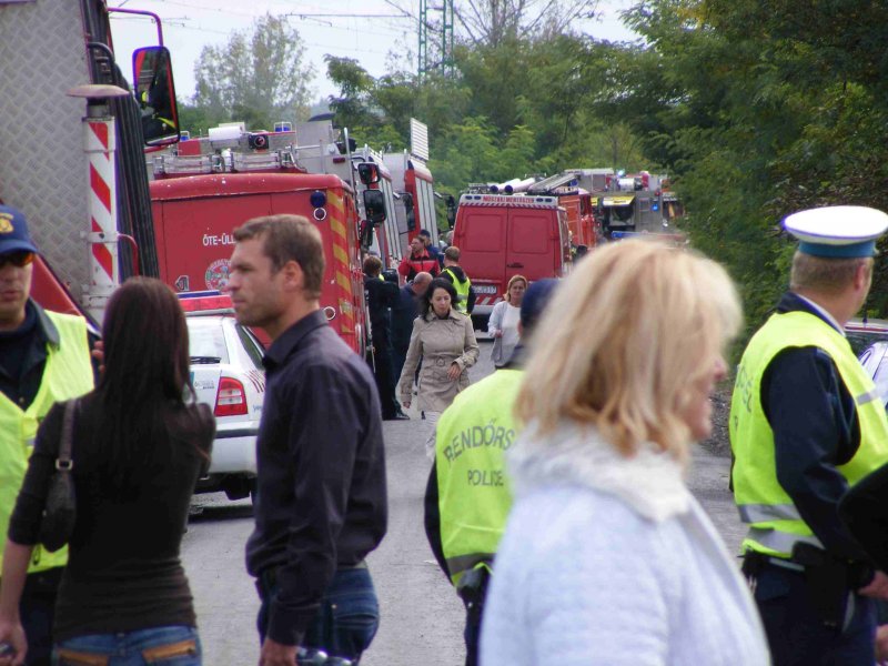 Rengeteg riporter és közvetítőstáb van jelen. A 4-es főúton hosszan állnak az autók, és mindenki katasztrófanézőbe igyekszik. Fesőnyáregyháza felé az utat lezárták. Óriási a tumultus!