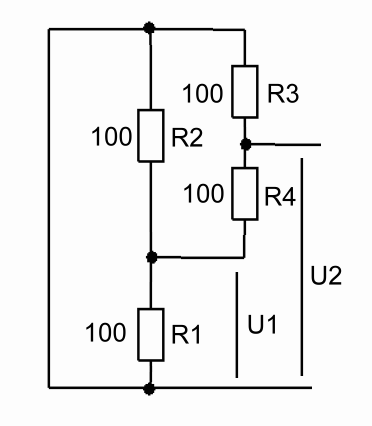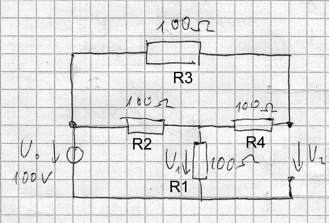 Az R3-R4 párhuzamosan van kötve az R2-vel, és ez az égész pedig sorba az R1-el.