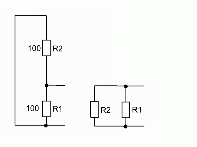 Az R1 felső vége össze van kötve az R2 alsó végével. Az R1 alsó vége össze van kötve az R2 felső végével. Hasonlítsd össze a két rajzot!