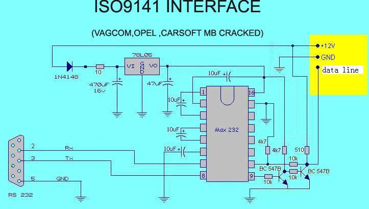 Sziasztok. Megnéztem az autómon az OBD csatit és az L-line is be van kötve... ezért kerestem hozzá rajzot. De mivel csak kisérletezgetni akarok vele, nem szeretnék folyton rendelgetni alkatrészt... szóval ezt találtam. Azt irták róla hogy müködik (vag-com 402-vel), csak az ml393 2-3 lábát kell felcserélni (mint a zárójelben) és a PTC-nek nincs sok haszna a K-L vonalon. Ha lesz időm kipróbálom, de itt a rajz, ha valaki látott hasonlót...