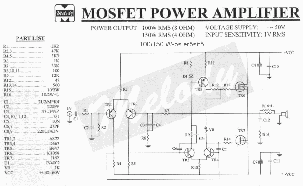 A nem túl meggyőző.. hát szerintem jobbak azok az erősítők ahol egy műveleti erősítő fogadja a bemeneti jelet.Bár ennél egy differenciálerősítő fogadja az is lényegében driftelnyomásra való de szerintem a műveleti erősítős erősítők bemenet szempontjából majdnem ideálisak. De ez nem is fontos aki 100w okat akar halgatni