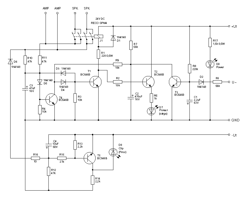 Azt tudom,hogy hangfal védő. Meg is építettem csak még nem kötöttem be. Majd egy STK4048-hoz lesz építve.Egyébként az erősítő már kész és működik is. Még egy kérdés a képpel kapcsolatban. Van a +-táp és a test de van egy olyan,hogy U és mellette a hullámos jel(56k ellenállás után). Oda mit kell kötni?