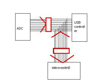Ha lenne akkor sem lehetne úgy megoldani, mert amikor az USB-felől a mikrokontrollerre megy az adat, akkor mindenféle leválasztás nélkül az ADC kimeneteit szembe hajtaná és az szerintem nem lenne neki egészséges. 3 állapotú kimenet kéne akkor rá, de azt nem tartom valószinűnek.