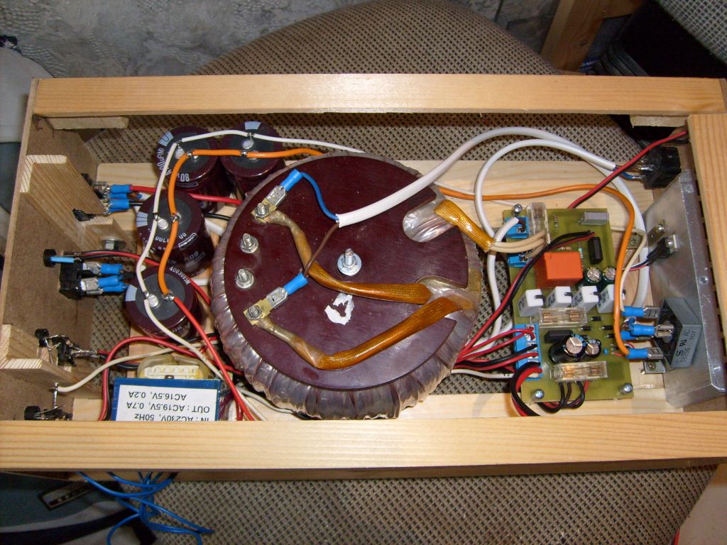 Készítettem egy tápegységet,ezt szeretném megmutatni nektek.Lágyindító kapcsolással és stabilizált kimenettel. A lágyindító az oldaról való,pici nyáktervátrajzolással,a 7812-höz pedig én terveztem egy nyákot,a 2 egy panelra került.12V 1 A max terhelhetőség...illetve kb 45 V a másik kimenet.Saját készítésű fa doboz,burkolatot természesetes kapni fog csak bár nem bírtam kivárni az élesztést amíg elkészül a tető ![]() A 4. képen látható a céláramkör amihez készült,látszik rajta hogy természetesen azt nem én építettem.