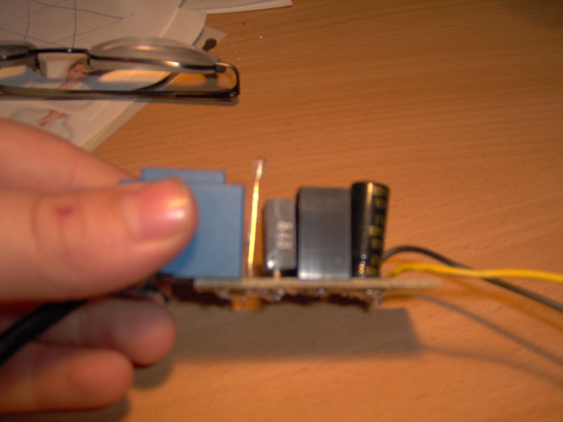 Elkészült az 1,8-wattos kis tápom tartalma:led,1k-ellenálás,egyenirányító,7805,hütőborda,3300mf-os kondi. 7805