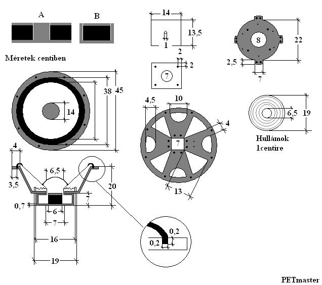 Szerbusz. Privátba is épp erről kérdeztek így készítek egy vázlatot a méretezésről. A lényeg a kávánál, hogy megtartsa az épp nem kis súlyú mágnesed és a vasat is. Nem rosz ötlet az ón. Csak akkor jó vastagon ne sajnáld az anyagot belőle. A méretezés amúgy attól függ: milyen membránszél méretet használsz, mágnesméret és tekercscséveátmérő. Először ezeknek a mérete a legfontosabb. A többit ehez kell méretezni