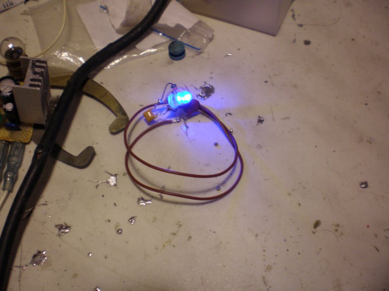 Következő dolog meg az lesz ebből az egészből, hogy bicikli küllőre rá lesz rakva a led a 2 menettel együtt, és mellette meg ott lesz a váz villához fogatva az adó rész. Semmi mechanikus kapcsolat és mégis világít majd a forgó kerékben a led