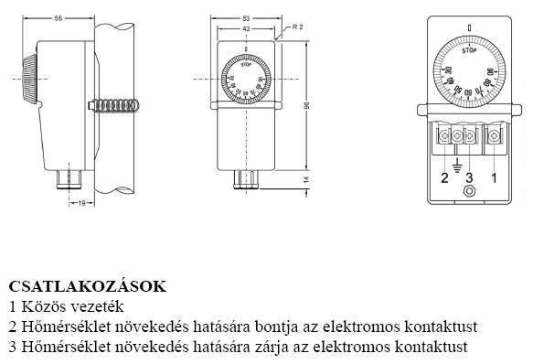 Sziasztok! most vettem egy csőtermosztátot amit szeretnék bekötni,mellékelem a rajzát (nem bekötési), valaki esetleg ezen fel tudná vázolni hogyan kössem be ha azt akarom elérni hogy a beállitott érték fölött kapcsoljon egy szivattyút? köszi