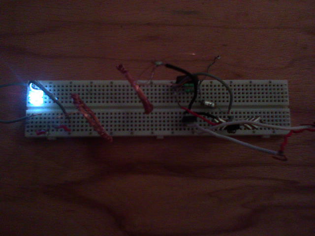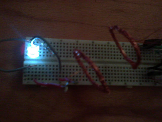 Maximálisan 6cm visz át, de a közzé tett bútorlap csöppet sem ront a fényerején. (A képen épp 1.5V ról jár, és 5V-os led van bent tesztalanynak)