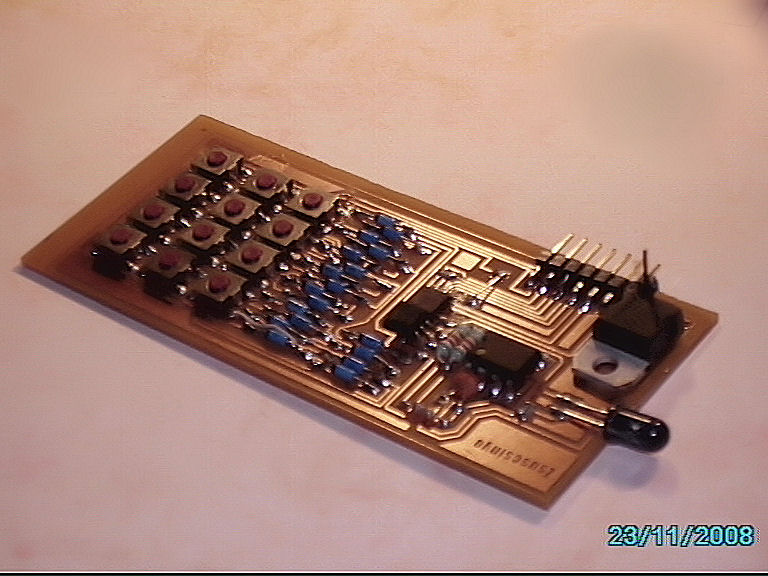 Remélhetőleg jól is szól! Már nem csinálok új hsz-t, bemutatom ebben a kis távirányítómat. Attiny13 van benne, RC-5 szabvány van most beleprogizva, ügyeltem az "esztétikus" megjelenésre is sajna néhány alkatrész nem volt kéznél SMD-ben de amint lesz kicserélem. 12 csatornás, jelenleg PHILIPS Tv jeleit gyűrtem bele Íme: