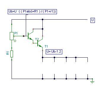Mondjuk el lehet képzelni hat komparátort a kiválasztáshoz (50k-s poti fesztől függően) és hat egytranzisztoros áteresztő a szabályzáshoz. Kisebb igények esetén hat tranzisztor bázisait feszosztó leágazási pontjaira kötve szintén előidézhető a hatás.