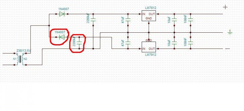 lenne egy problémám! van egy trafóm, 13,5V-ot ad le váltóban, 35VA-es. építettem neki egy egyenirányító áramkört,...működik, semmi gond nincs vele kb. 2percig, amíg a Dióda el nem kezd melegedni, és utána megöli a kondenzátort! ( a kondenzátor értéke 220µF/35V : direkt nagyobbat választottam, mint amekkore feszültséget felvesz).Sztem a dióda (1N4007) nem bírja az áramot, vagy nemtudom. remélem érthetően fejeztem ki magamat :yes: itt a kép. a segítséget előre is köszi!