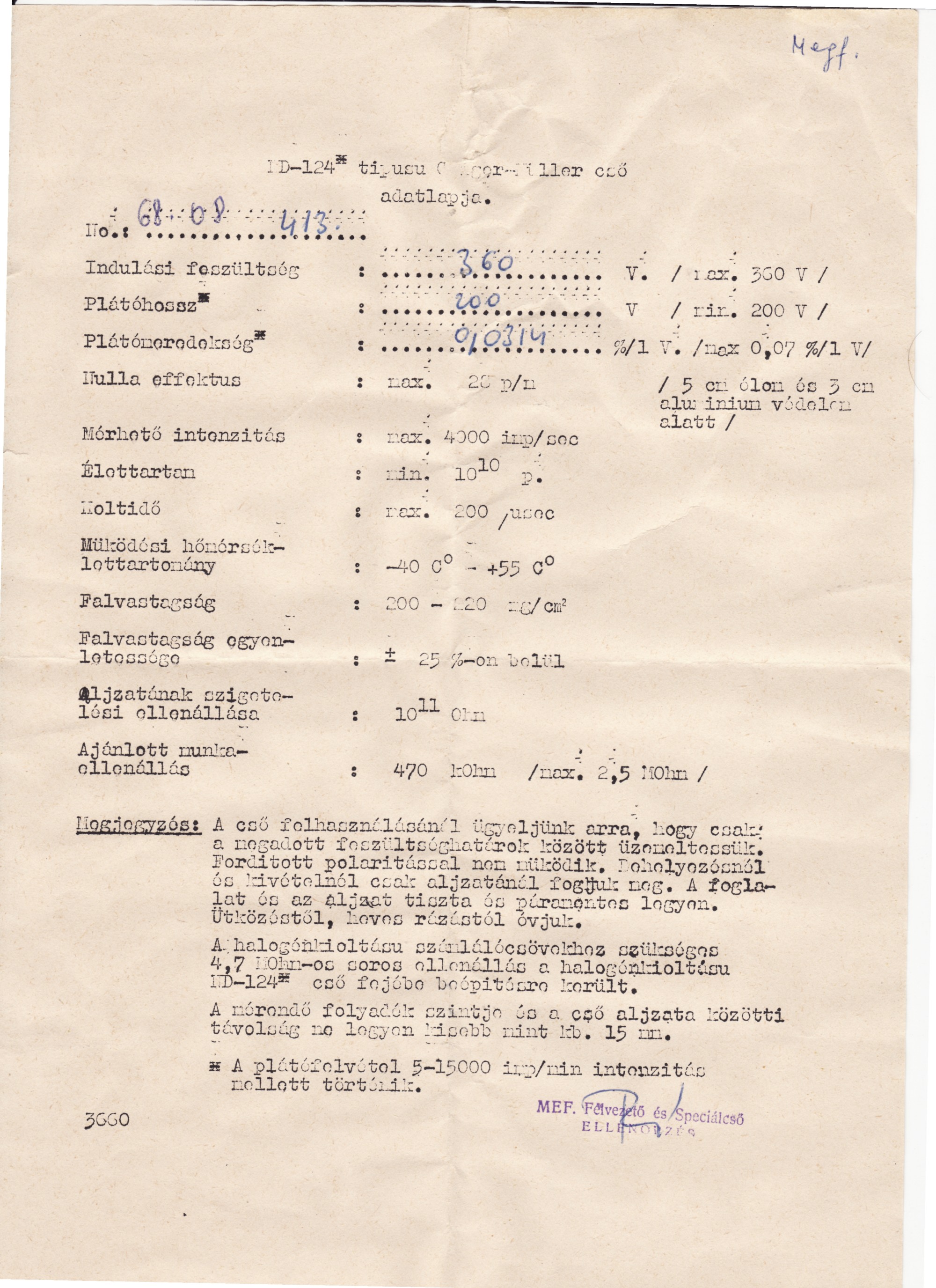 Sikerült megszereznem a GM csövet, egy TUNGSRAM ND-124 -es üvegcsövet. Eredetileg kettő darabot kaptam, de sajnos az egyik cső már 100 darabra volt törve, úgyhogy azt visszaadtam. Reménykedem benne, hogy ez működik. Volt hozzá magyar adatlap is.