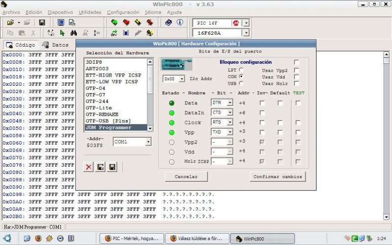 Szeretnék segítséget kérni a winpic hez, mert volt egy rendszerösszeomlás és azóta nem tudom feléleszteni az égetőmet :'(. Az égető negy gyári, egy tuning JDM, eddig 100% osan működött, van rajta max232 is, külső tápról megy. A progi viszont most nem ismeri fel, gondolkodás nélkül hibát ír. ERROR -> El hardware no responde. A hardver beállításoknál próbáltam állítgatni de sehogy se jó. Tud esetleg valaki egy jó beállítást hozzá? Egy kép sokat segítene. A port beállításai most ilyenek: Csak a winpic et telepítettem, a kompatibilitást win 2000 re állítottam. Vírusírtó kilőve (hátha fogja a portot). Semmi más nem csatlakozik a soros portra. A kép szerint van valami 12C addr, az mi, és honnan tudom mire kell állítani (ha így nem jó). A segítséget előre is köszönöm.