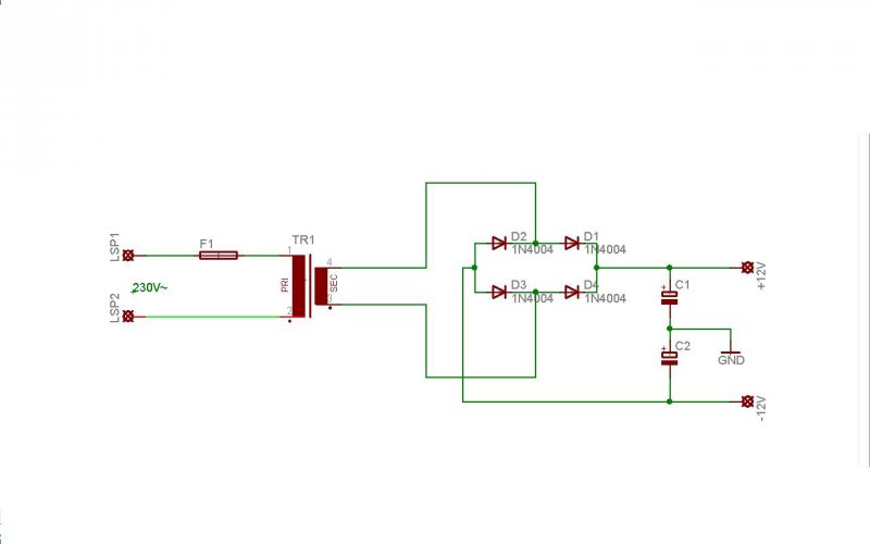 Azzal pedig számolj hogy az egyenirányítás után a feszültség gyök 2szeresére nő ezért ha a trafó 12-12voltos akkor a kimenet körülbelül 13-13volt lesz. Amit ha nem visel el a céláramkör akkor bizony kellenek 12voltos stabilizátor kockák is pozitív ÉS negatív ágra is.