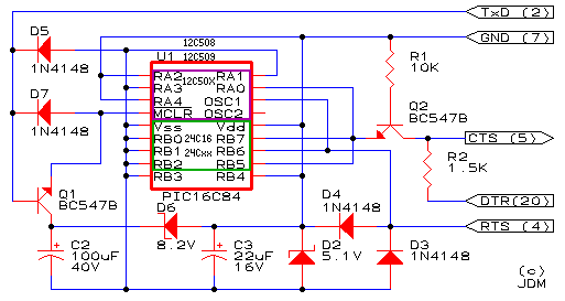 16F84 helyett használj 16F627 vagy 628-at, ("A" betűs is lehet) többet tud, fele annyiba kerül, 99,8%-ban kompatibilis 16f84-el. a progikban csak egy minimális átírás szükséges és 100%osan jó lesz.