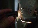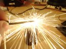 Coilgun berhelés közben véletlenül kisütöttem a 200v 940µF-os kondit egy ollóval. Így néztem: