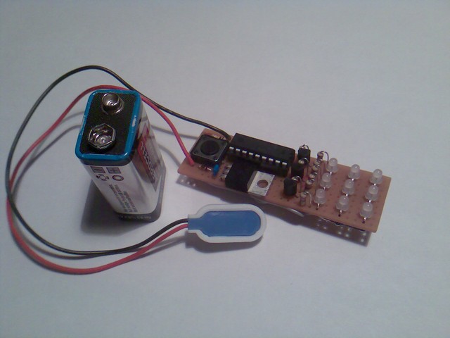 A héten építettem ezt a ledes villogót. 9 darab duoled (piros/zöld) van mátrixba kötve, amit egy Pic16f628a vezérel. A gombbal lehet váltani az effektek között, az utolsó után pedig kezdi elölről (kikapcsolni sajnos nem lehet )Most 6 effektet tud, de később írok még rá párat.