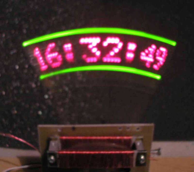 Nem annyira vibrál már, hiszen 22Hz-en rezeg. Igy elviselhető és nézhető, bár szerintem 16Hz-en is elég jó. Az a helyzet, hogy van olyan ismerősön, akinek a 75Hz-is vibrál, sőt a 100Hz-es TV-től is könnyezik a szeme... A szöveg kiírása végtelenül egyszerü: A Propeller Clock programban ez, azonnal módosítható, átírható. A két kék csik az nálam zöld LED, szintén a Prop.Clock program, külső kör helyett van bekapcsolva, (vagy ki). Szia.