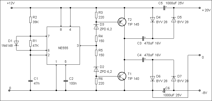 Most találtam egy tetszetőset csak kisebb átalakítást kíván. NE555 forever !!! ![]() És nekünk nem kell negatív táplétrehozás tehát annyival mégegyszerűbb. Mostnéztem hogy a TIP 125W 10A es tranyó. Egy pnp és egy npn. Hmmm lehet hogy ezt holnap megépítem... Nekem megteszett.