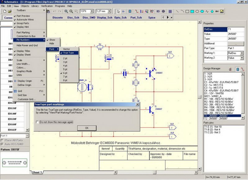 Áttértem a legújabb Dip verzióra és a régi fájlok behívásakor állandóan egy üzenetet kapok, hogy állítsam át a Part Marking /font/ True typ ról a pipát vektorra. Tulajdonképp mi a helyes beállítása ezeknek az opcióknak? Még egy kérdés, melyik módot érdemes választani a grafiaki módnál (1) OpenGL , (2) Direct 3D, (3 )Windows GDI.