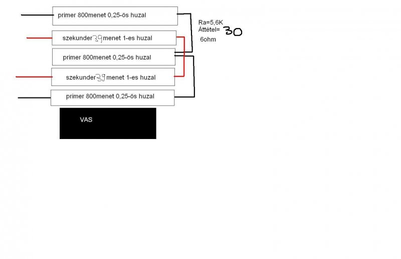 6 ohmra a következő: Áttétel=ngyök(Ra/Rt)=ngyök(5600/6)=30,6 Akkor ha 2400 menet a primer akkor a szekunder 2400/30,6=78 menet. Tehát akkor a két szekundert kösd párhuzamosan a 78-78 menetet. Nem lehet eltérés a menetszámban ennek pontosnak kell lennie. A primernél nem számít egy-két menet úgyis sorba lesz kötve.