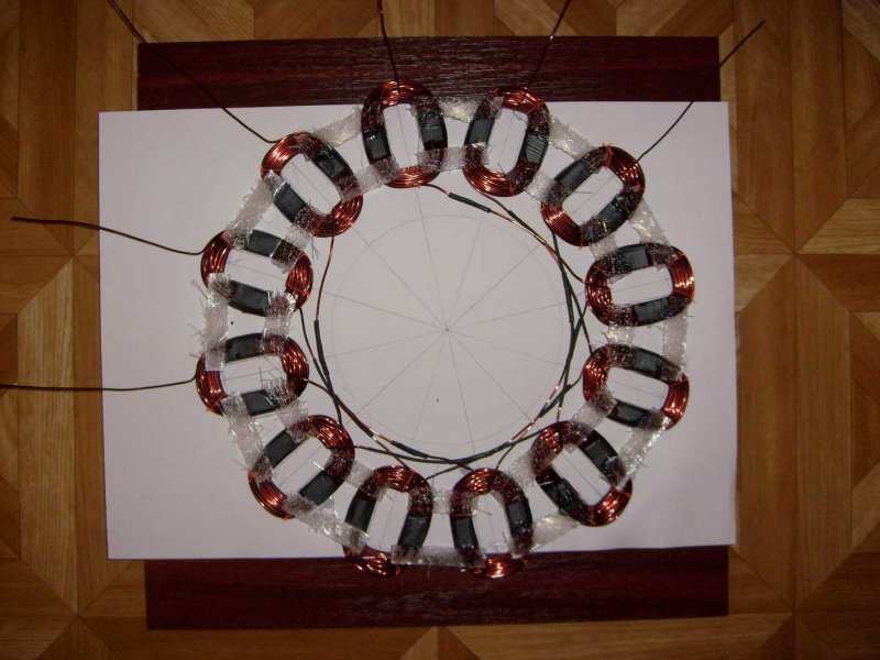 Öszintén GRATULÁLOK.nagyon szép munka.Most már csak a mágnesekröl árulj el pár képet,méretet.És végül egy konstruktiv javaslat: ha lessz egy következő,akkor probáld meg egymáshoz közelebb ,,,sakkozni,,, a tekercseket.Meglepödsz mekkora teljesitménynövekedést fogsz tapasztalni.
