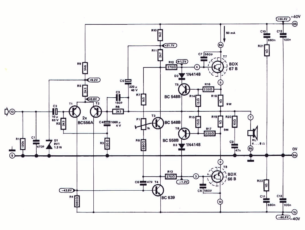 Komplett erősítő kapcxsolási rajzot szeretnék, 100W-oast, mert van egy trafóm, és ez lead 26.5V-ot (középkivezetés nélkül) ez egyenirányítva 37.5V körül mozog! Az lenne a kérésem, hogy ez az erősítő +36V-ról pöccenjen, és ne kelljen neki szimmertikus táp! (nem akarok bajlódni a trafó ujratekercselésével )
