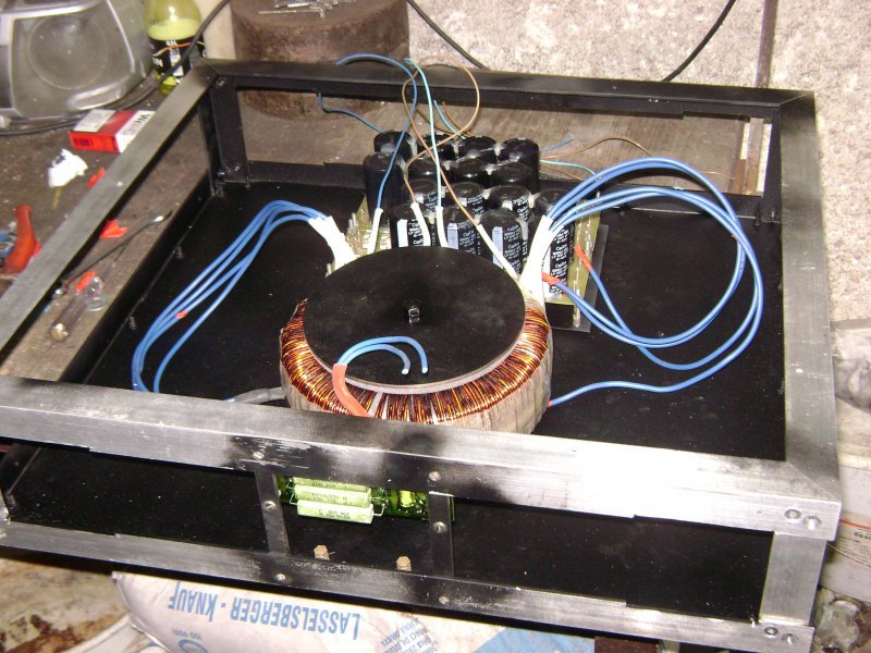 Szeretném nektek megmutatni az épülö erősítöcskémet, még negyedkész de már alakul. Ha készlesz akkor 4*300va fog tudni +hidalhato lesz, Az elölap teljesen üres lesz csak egy led foglal majd helyet rajta távvezérléssel lehet kezelni, a készülék keményfa burkolatot fog kapni. Most hejet foglal benne egy 2kva toroid és 2*80000mF kondi és egy lágyindíto, hát ennyi egyelöre