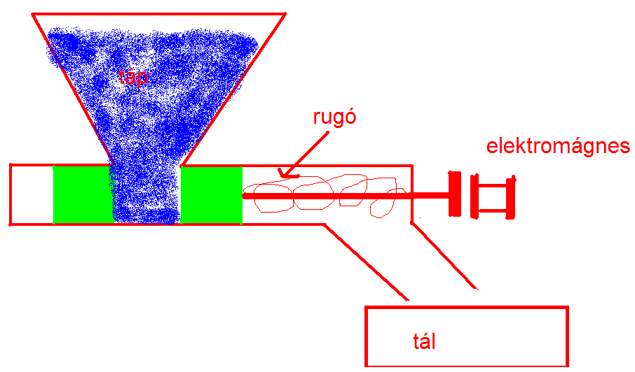 Én inkább pár dobozkát töltenék meg, és pl elektromágnesre kioldana, és kinyitna, az talán megbízhatóbb, mint egy komplett csúszkás mechanika, nah meg hogyan lehet kivitelezni egy ilyen tölcséres cuccot, ha nem vagy esztergás, vagy alu öntő, akkor nem könnyű.
