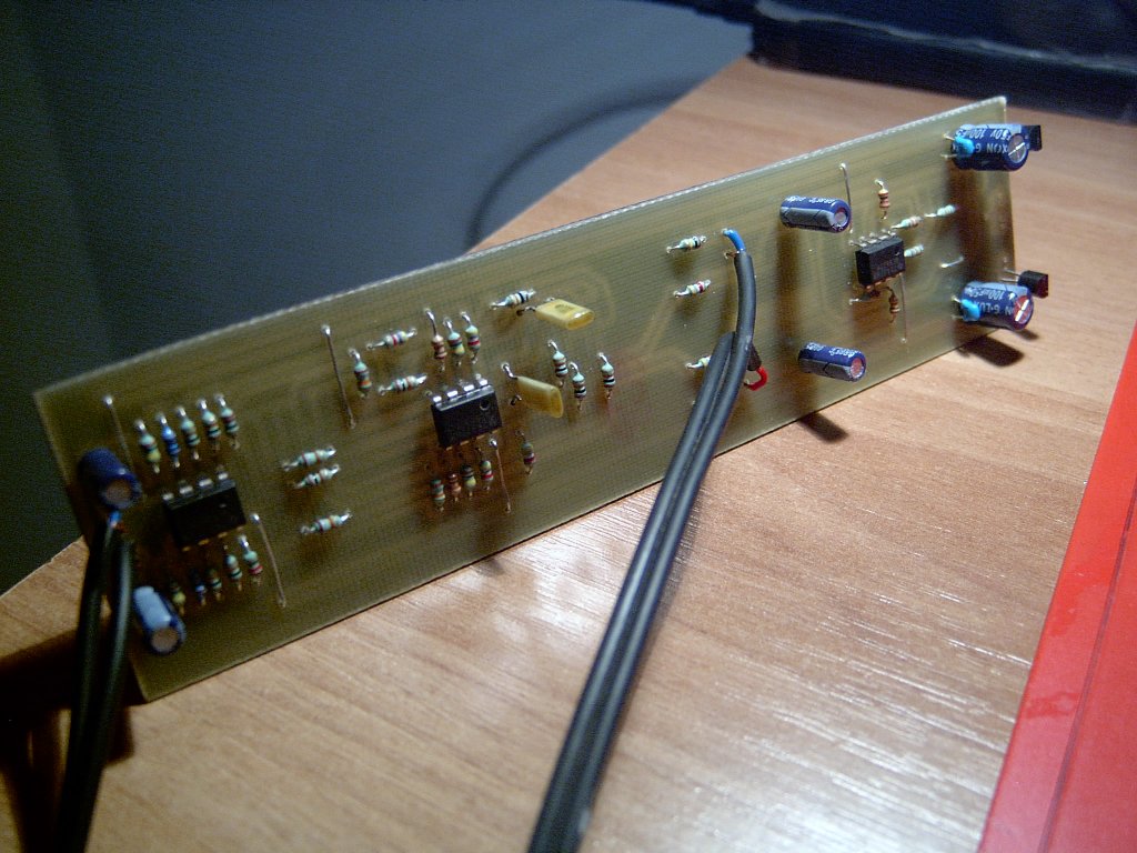 Csináltam egy hi-fi sztereó előerősítőt. Kicsit csalódtam az LM1036 és társaiban, így inkább összehoztam egy jól bevált mezeit. Nagyon frankón lehet vele szabályozni mindent, nincsen zaja és szépen szól. A nyáktervet direkt így terveztem hogy az erősítő fa előlapjára belülről szépen rásimuljon és minimális helyfoglalása legyen. Így még árnyékolni is könnyű lesz.