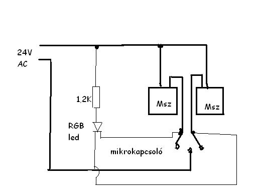 Két független LED-nél nem is lenne probléma az egyenirányítás... De a közös pont és a mikrokapcsolók kötése miatt a graetz-híd nem jó! (AC-s a relék működtető feszültsége. S emiatt az egyenirányítás után nem tudnál közös pontot képezni az egyenirányító után.)