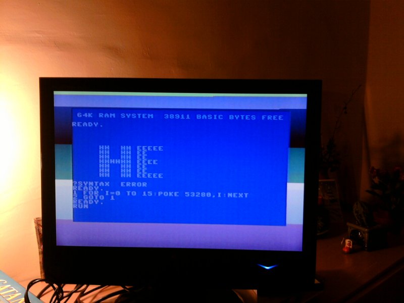 Az életre keltett C64 egy HE felirattal:
