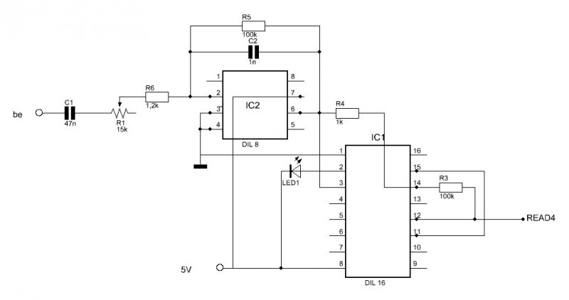 Nem akarlak elkeseríteni benneteket, de ez így sehogyan nem jó! Ez a rajz cseppet hiányos. - A 741-es nem igazán szereti az 5V-os tápfeszt. - Ennek a kapcsolásnak, tekintve, hogy a műveleti erősítő bemenete a testen van, +-5V-ra lenne legalább szüksége. - Féltápfesz esetén, nem lehet a műveleti erősítő bemenetét a testre tenni, Azt két egyforma ellenállásból kialakított osztóra kellene kapcsolni, hogy féltápot kapjon, akkor állna be a munkapontja. - A Led2 nem illik közvetlenül a tápra kötni, csak ellenálláson keresztül. bár így nem történik semmi baj, tekintve, hogy fordítva van berajzolva. (akár csak a motor Led1, kivétel, ha a motor tápja mínusz.) Szóval "annyi bajnak annyi baja van!" De a CD4049-ben 6db. inverter van. Ebből három van alkalmazva. Ha a maradék hármat egymás után kötöd, a műveleti erősítő kiváltható vele. (Három egymás után kötött inverter, szintén invertál, és ha vissza van csatolva, erősítőnek használható.)üdv! proli007