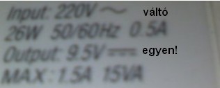 A tápon ott van a jel. Egyenáram jön ki belőle! Minden jel erre utal. Ki mondta, hogy váltó jön ki belőle? Szerintem senki...