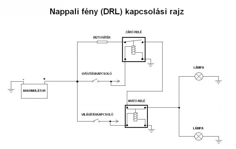 Közben továbbfejlesztettem a rajzodat. Akit érdekel még DRL (nappali fény) bekötése: