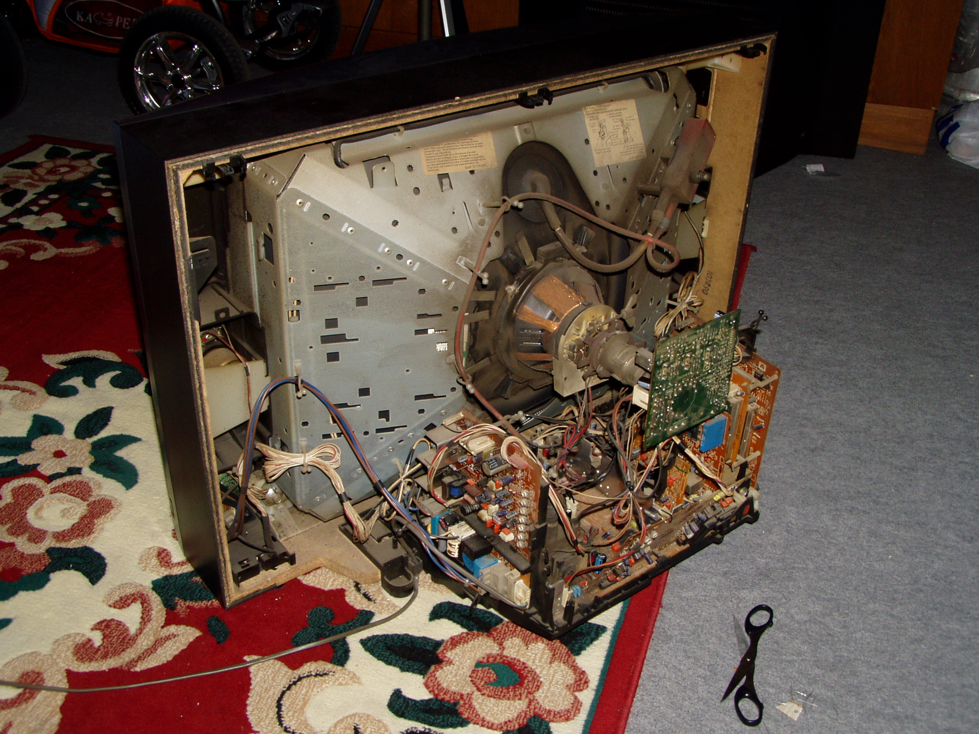 Sikerült végre csinálnom a Sony hátuljáról képeket, valakinek valami ötlete mivel folytassam (ugye nincs kép, előtte szélesebb volt míg volt), a képcső nyakán lévő nyákon kicseréltem azt a pár elkot, meg az alsó nagy panelon is pár nagyobbat... Érezni hogy még jobb lett a képcsövön a töltés, de még mindig nincs kép