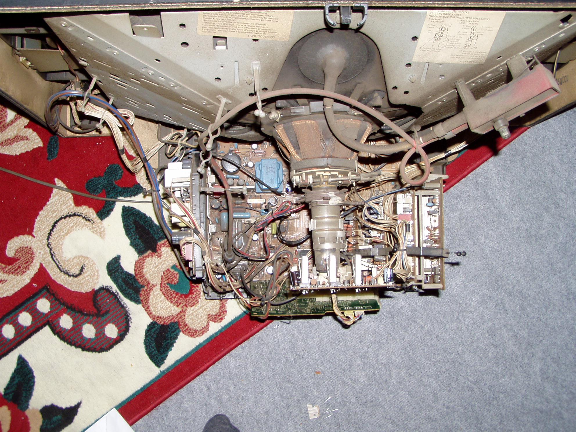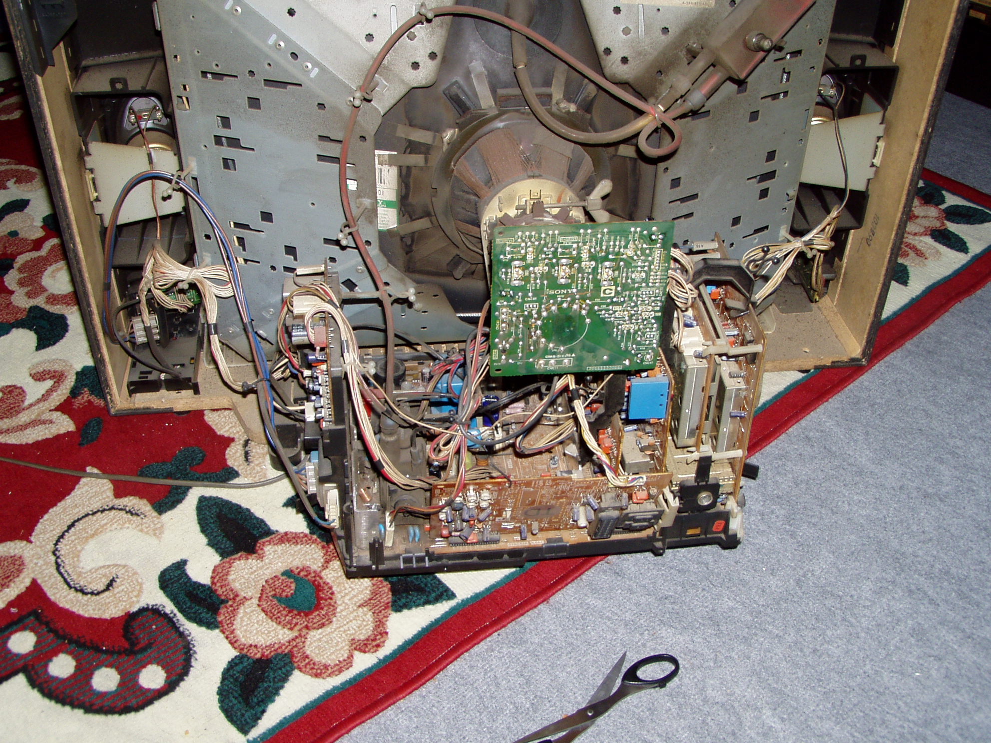 Sikerült végre csinálnom a Sony hátuljáról képeket, valakinek valami ötlete mivel folytassam (ugye nincs kép, előtte szélesebb volt míg volt), a képcső nyakán lévő nyákon kicseréltem azt a pár elkot, meg az alsó nagy panelon is pár nagyobbat... Érezni hogy még jobb lett a képcsövön a töltés, de még mindig nincs kép