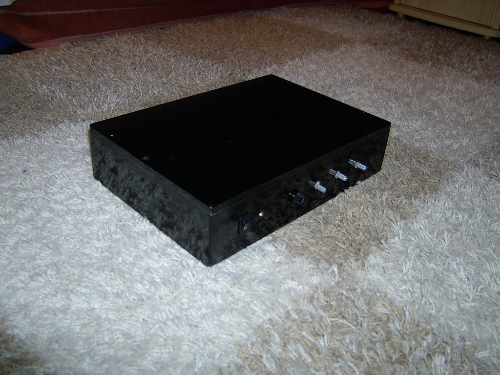 Íme az enyémről beépítve: A kapcsitápnak köszönhetően a belmagasság 5cm. és dobozostul 2,8kg (1,8kg a doboz). Ezen a képen a potikupakok még hiányoznak.