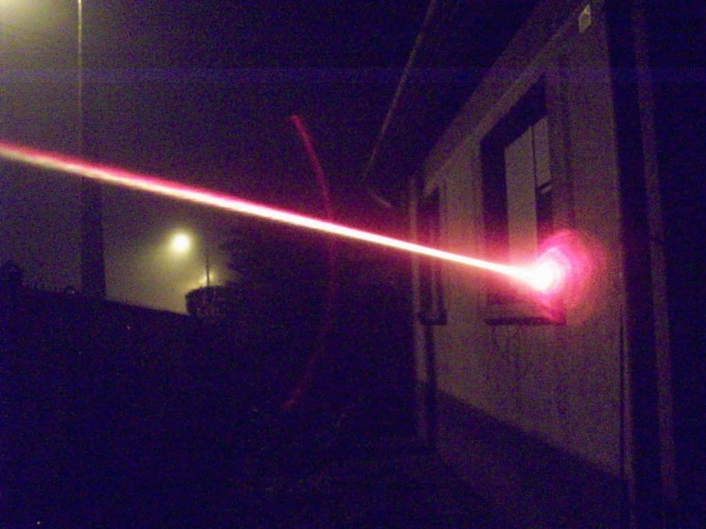 Elég nagy köd van most nálunk, és pont nálam van osztálytársam fényképezője, ezért csináltam az előbb pár képet a DVD írós lézerről és egy zöld pointerről is.