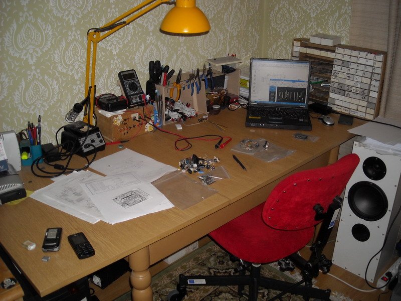 Én a napokban SOS-ben forrasztottam. Ilyenkor az asztalon lévő dolgokat egy ügyes kis mozdulattal hátrébbsöprom, hogy legyen hely annak amit most csinálok.