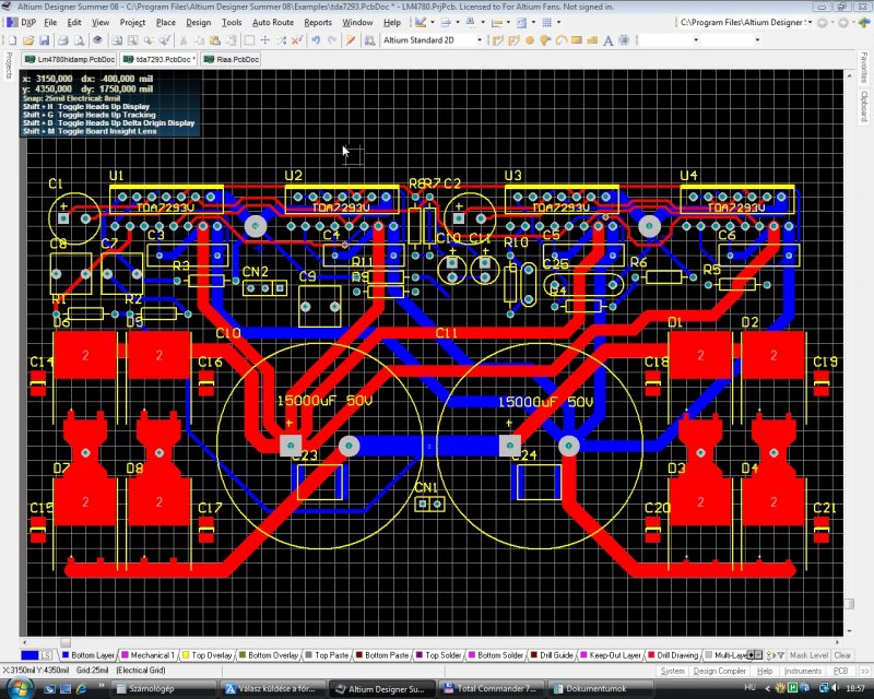 Szóval a teljesítmény leképzés így történik, de az a kapcsolás amihez most tervezem a nyákot , nem így állítja elő az ellenfázisú jelet. Az okot korábban már leírtam, "az egyik erősítő a másik kimeneteléről él" hogy ismételjem magam. Egyébként a 6-ic erősítő is életképes lenne, csak nem tudsz hozzá optimális nyákot tervezni 2 rétegen sem.
