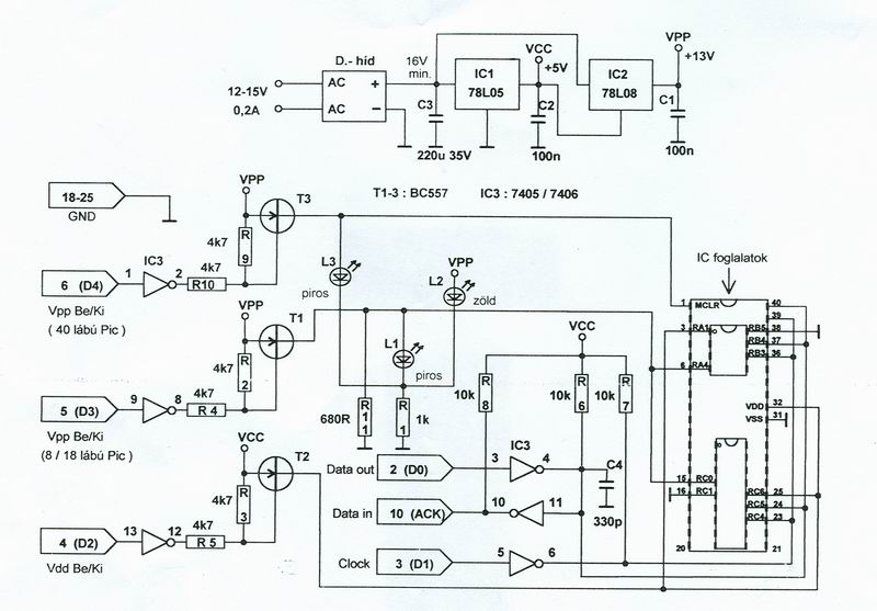 Nos készülget az újabb PIC égetőm egy TAIT féle. http://pikdev.free.fr/IMAGES/Prog_Shematic.gif Annyit szeretnék kérdezni, hogy milyen tranzisztort ajánlotok bele a Q1-2 nek.