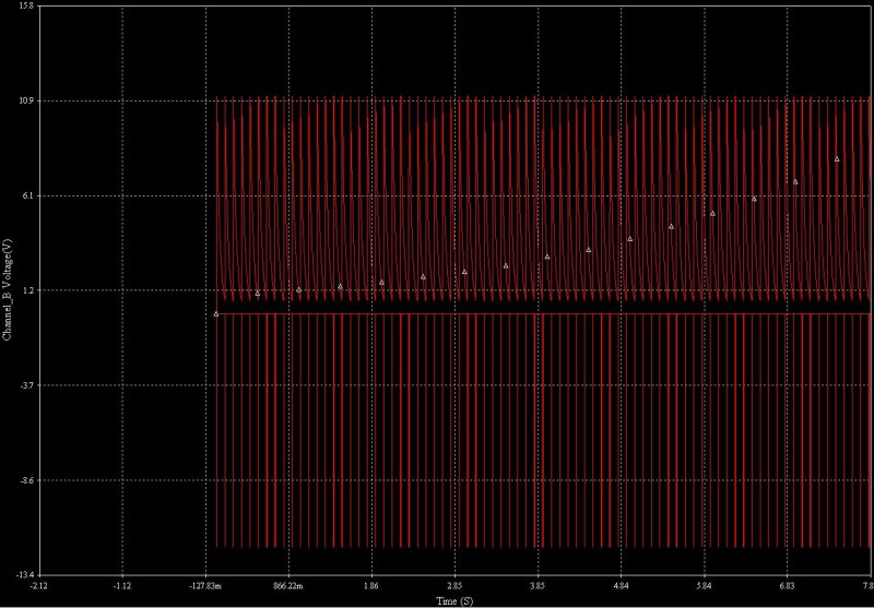 De a gyakorlatban mégis működik! S az, hogy a szimulációban GYÖNYÖRŰ jelalakokat produkál az áramkör, attól még a gyakorlati kapcsolás realizálásakor lehetnek meglepetések... Össze kell dobni egy próbapanelon és mehet az éles próba... (Bár sokszor próbáltad a kapcsolást, csak már nem tudom, hogy a gyakorlati próba megtörtént-e már... )