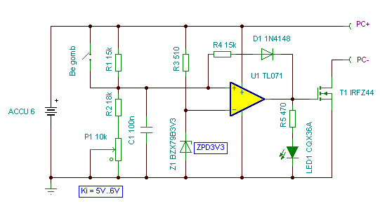De 6V-ra módosítva az áramkört, nyilván nem lesz jó ide a 6,2 V-os, hanem kisebb feszültségű kell. Ha ide mondjuk egy 3 V körüli Zenert kötsz be, máris kész a töltő a 6V-os akkuhoz. Bár szerintem a tápfeszt is arányosan csökkentheted.