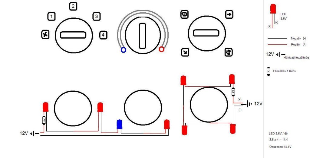 az alaphelyzet: 12 V-os nagymotorra (750 cm3) szeretnék egy egyszínű (kék), 8 led-ből álló 'optikai tuningot' .