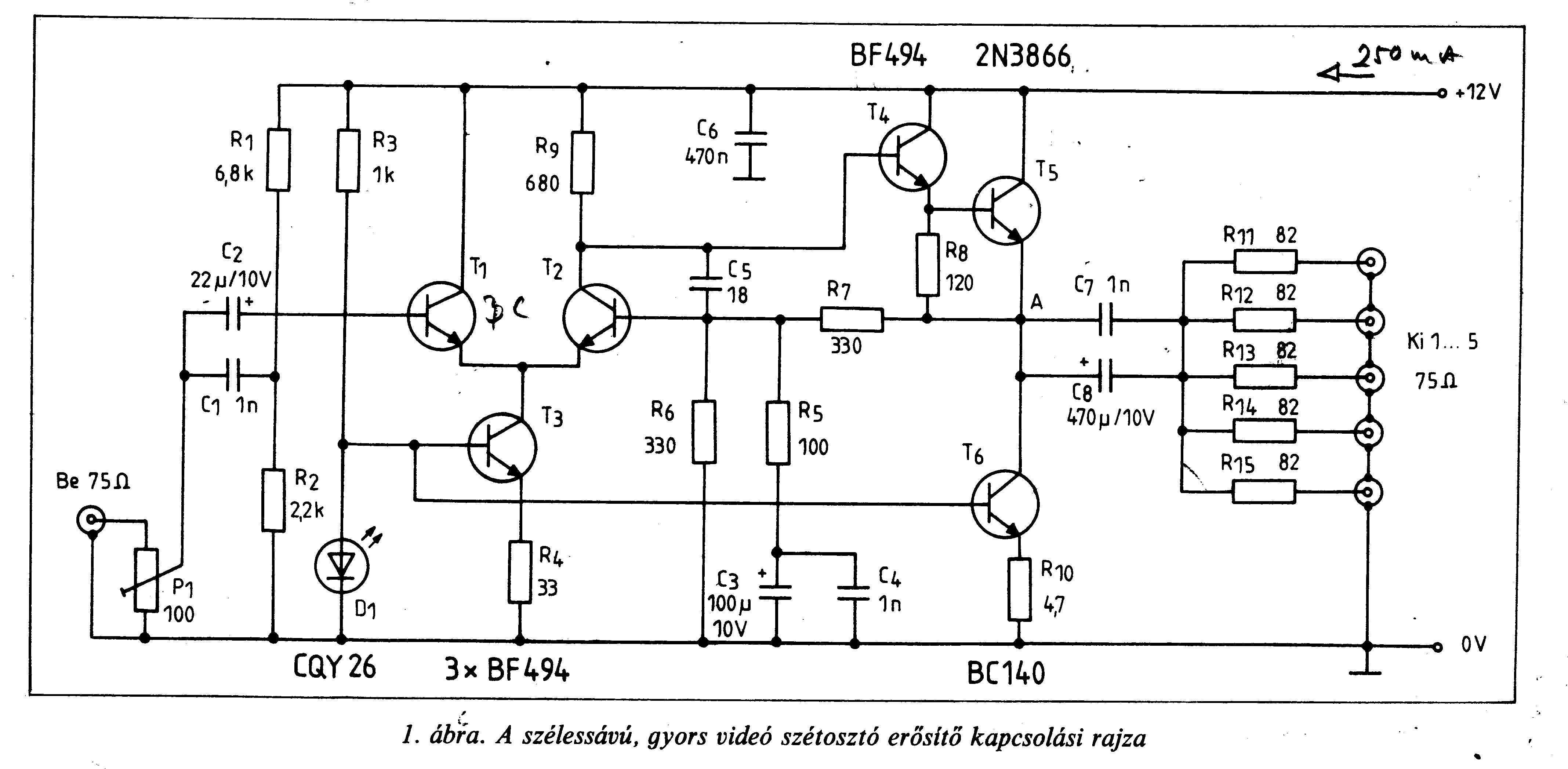 Amugy tiszta fetes cucc a 4066 közelítettem a kezemmel az IC tokjához és már beugrált a kép.Vezérlő fesz sem kellet az ujjammal a +hoz vagy a -hoz érintettem a kapcsolo lábát,s már reagált. Durva dolog ez a video jel,olyan mint az antenna jel,illesztett mint állat.Itt sem lehet megcsinálni azt h símán elossza az ember,a 75 ohm miatt. Nemrég szereztem egy 10es profi vido-audio jel szétosztót,most rajzolgatom la a belsejét,van egy előfok,mely csak illeszt, egy erősítő fok,és 10darab kimeneti fokazat.3tranyó+10tranyó az egész. kramer vm-10ar oldal közepén